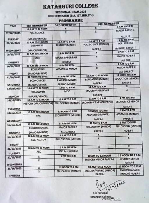 The odd semester sessional examination for the session 2025-26 will be started from 07-10-2025 onwards...